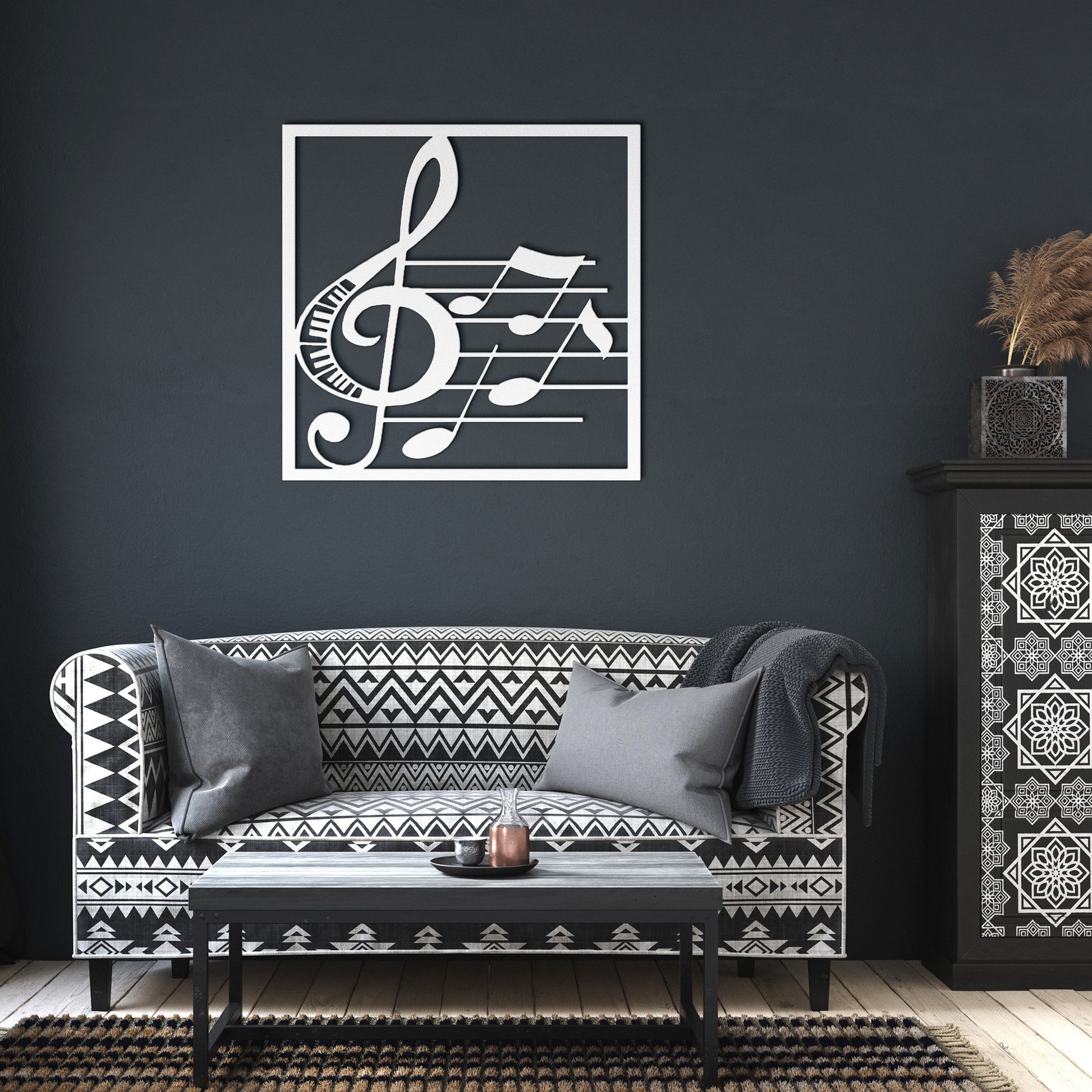 Introducing our captivating Treble Clef and Music Notes Metal Wall Art. Crafted from robust 18-gauge steel and coated with a sleek powder finish, this piece is available in five stunning colors. Adorned with intricate musical motifs, including the timeless treble clef and elegant notes, it adds a harmonious touch to any space. Ideal for music lovers and contemporary décor enthusiasts alike, this metal wall art effortlessly combines durability, style, and musical flair, making it a standout accent for your walls.